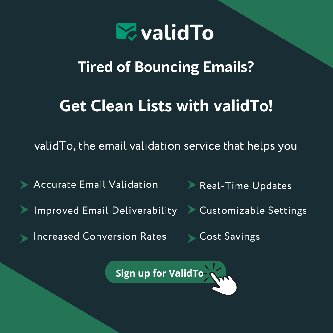 Ready to improve your email deliverability? Sign up now and verify your emails with us for free.